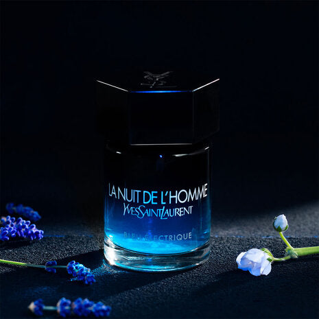 La Nuit de l’Homme Bleu Electrique is an electrifying version of an Eau de Toilette Intense. A flash of cool spices and aromatic notes, pulsing a dazzling beam of blue light into the night. A fresher, more intense take of the Eau de toilette based on a high-voltage blend of cardamom, ginger, geranium, and lavender.